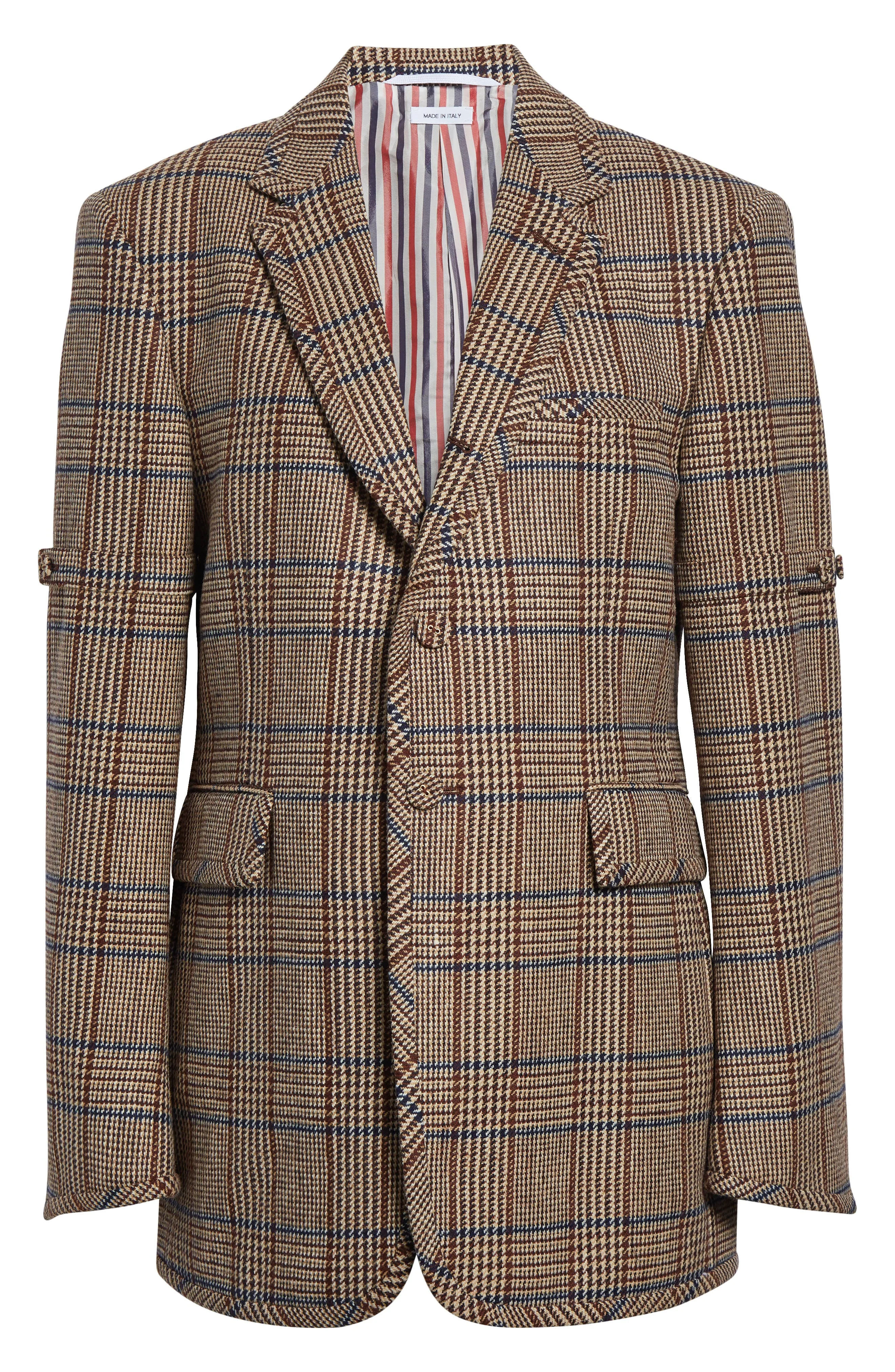 The label's signature shrunken fit distinguishes this sport coat tailored from plaid wool tweed and finished with adjustable armbands.Insert/edit appropriate preformatted text block or write copy focusing on fabrication/pattern, tailoring/fit and how those affect comfort, seasonality, occasion, etc.Fabrication: Tweed is a coarse wool or wool-blend fabric with a distinctive texture and a natural resistance to wear and tear. Used both for suits and sport coats, it provides an old-school look and feel that’s typically more semiformal than formal.Formality: Semiformal occasions that require you to look on the casual side of well-dressed, including daytime events, business-casual meetings, work travel and social functions. Notched lapels Button cuffs Chest welt pocket; front flap pockets Stripe-cupro lining 100% wool Dry clean Made in Italy Designer Clothing