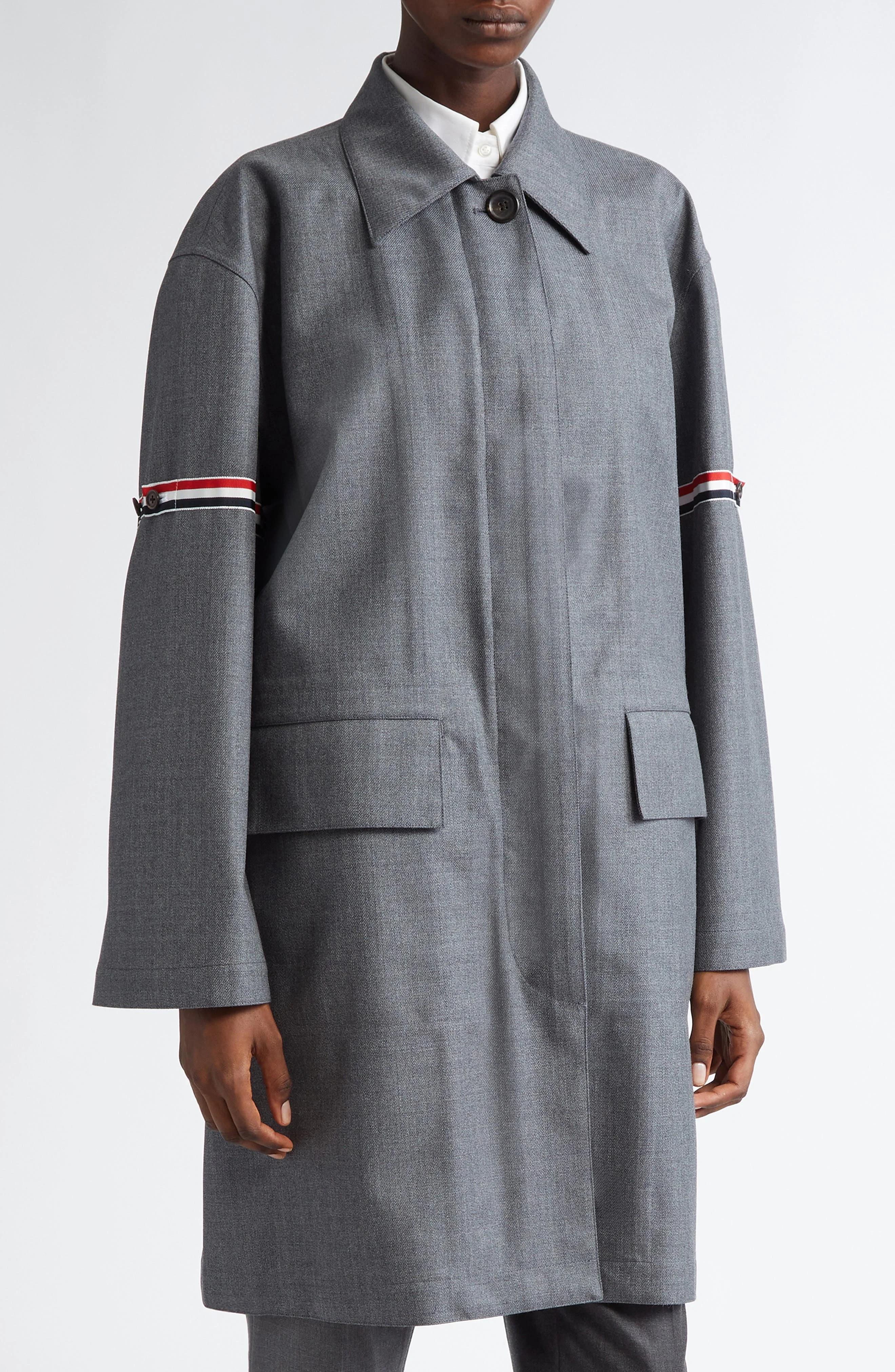 Thom Browne Tricolor Armband Water Resistant Wool Blend Twill Coat in Medium Grey at Nordstrom