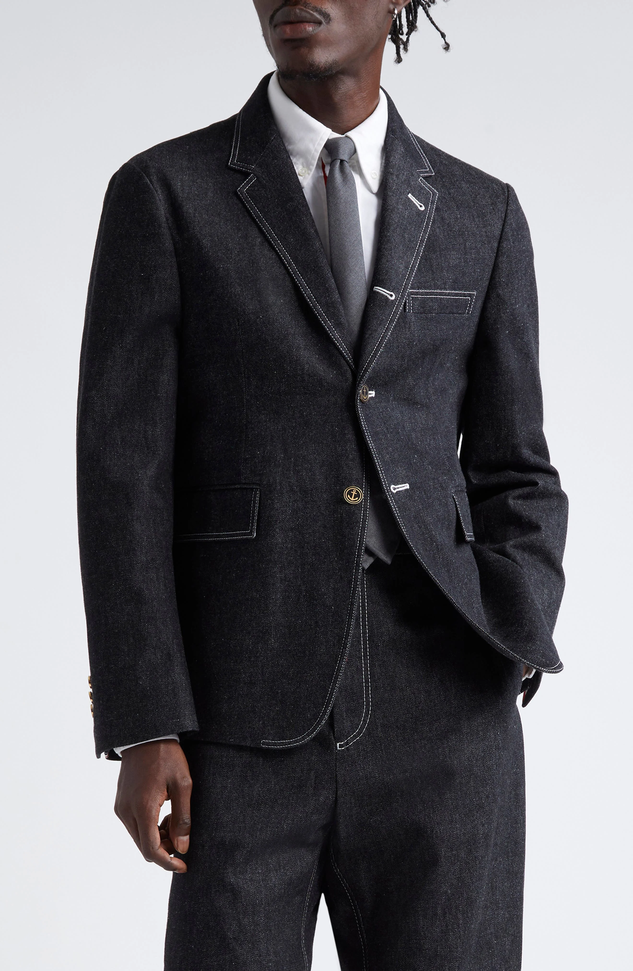 Thom Browne Unconstructred Classic Denim Sport Coat in Black at Nordstrom