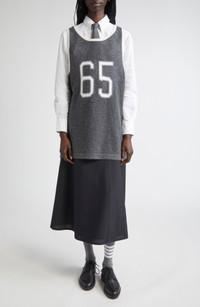 A tricolor grosgrain loop at the waist puts Thom Browne signature stamp on this wool-blend skirt tailored in an always-classic A-line silhouette. Hidden side-zip closure Cupro lining 50% wool, 50% polyester Dry clean Made in Japan Designer Clothing