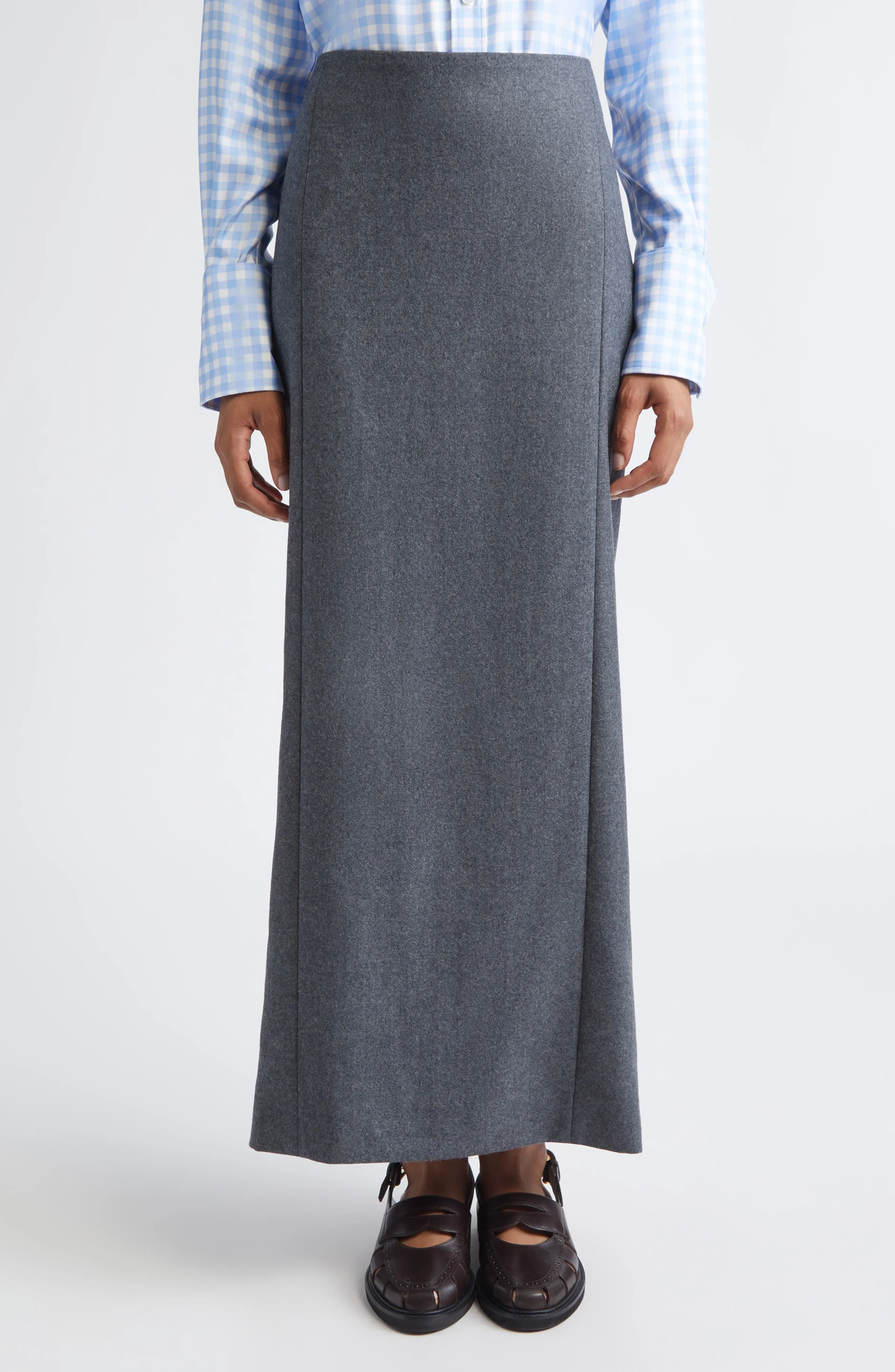 SOLID WOOL FLANNEL PENCIL SKIRT