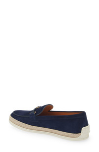 The breeziness of resortwear meets the artisanal quality the Italian fashion house is known for in a raffia-trimmed loafer with interlocking chain hardware. Richly textured suede and leather-wrapped hardware add to the shoe's timelessness. Leather upper and lining/rubber sole Made in Italy Designer Shoes
