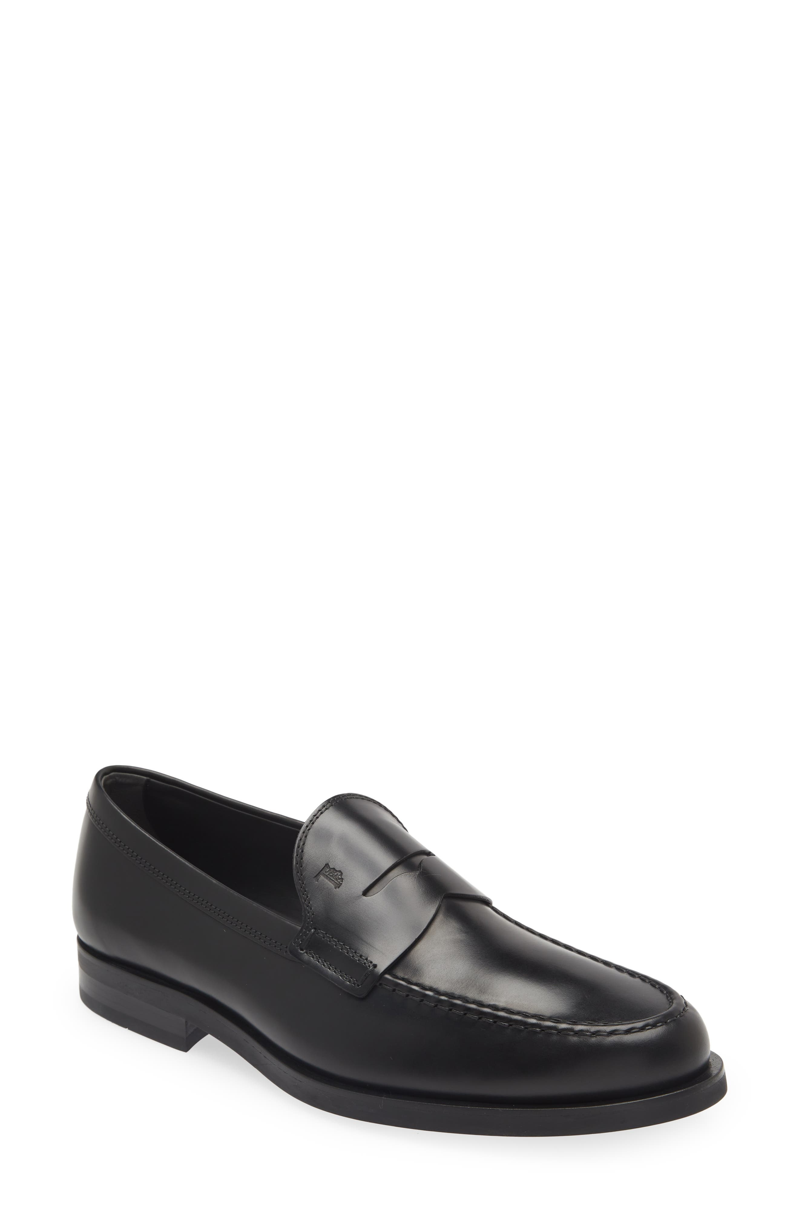 A classic keeper strap and exposed handstitching add a refined touch to a sharp Italian loafer crafted in semi-glossy calfskin leather with a pebbled sole. Leather upper and lining/rubber sole Made in Italy Designer Shoes