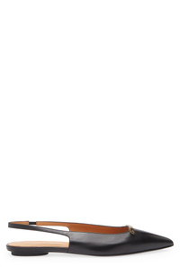 A logo-engraved bar bit bridges the cleanly structured vamp of a calfskin-leather slingback designed with a pointy toe and oval heel. Elasticized slingback strap Leather upper, lining and sole Made in Italy Designer Shoes