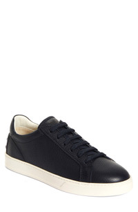 Panels of smooth calfskin leather lend a sleek aesthetic to a casual lace-up sneaker set in a rubber cupsole with signature pebbled tread. Lace-up style Leather upper and lining/rubber sole Made in Italy Designer Shoes