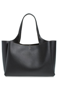 A logo stamp and signature T-Timeless stitching enrich the design of this pebbled calfskin-leather tote that features a distinctive gusseted silhouette. Shoulder straps Protective metal feet Leather Made in Italy Designer Handbags
