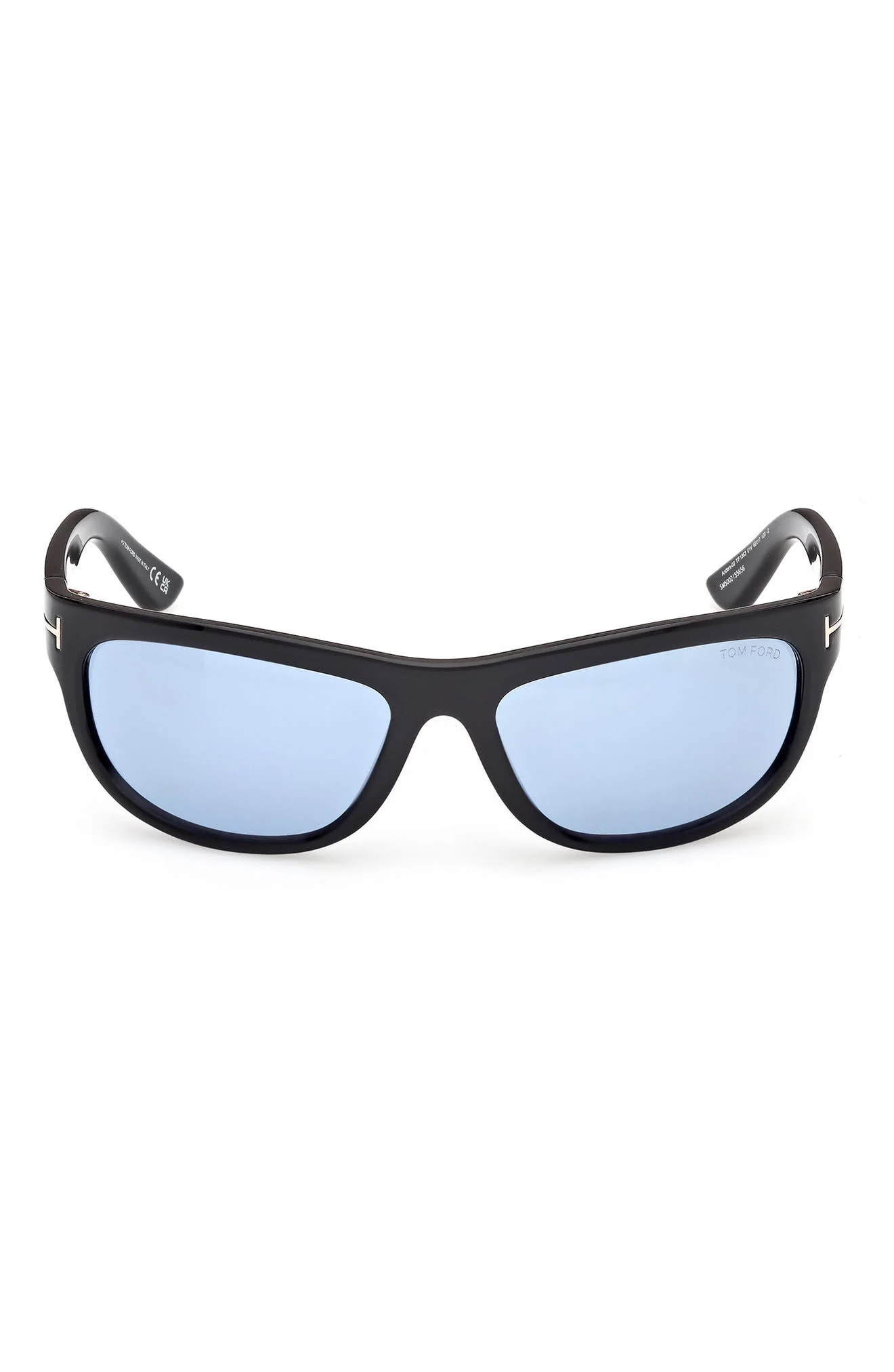 TOM FORD Anders 62mm Oversize Rectangular Sunglasses in Shiny Black /Blue Lens at Nordstrom