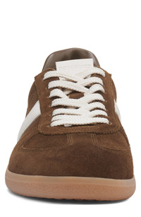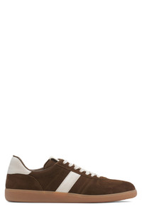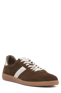 Embossed logo lettering details the suede-and-leather upper of this Italian-made sneaker designed in a retro silhouette grounded by a one-piece gum rubber sole. Lace-up style Leather upper and lining/rubber sole Made in Italy Designer Shoes