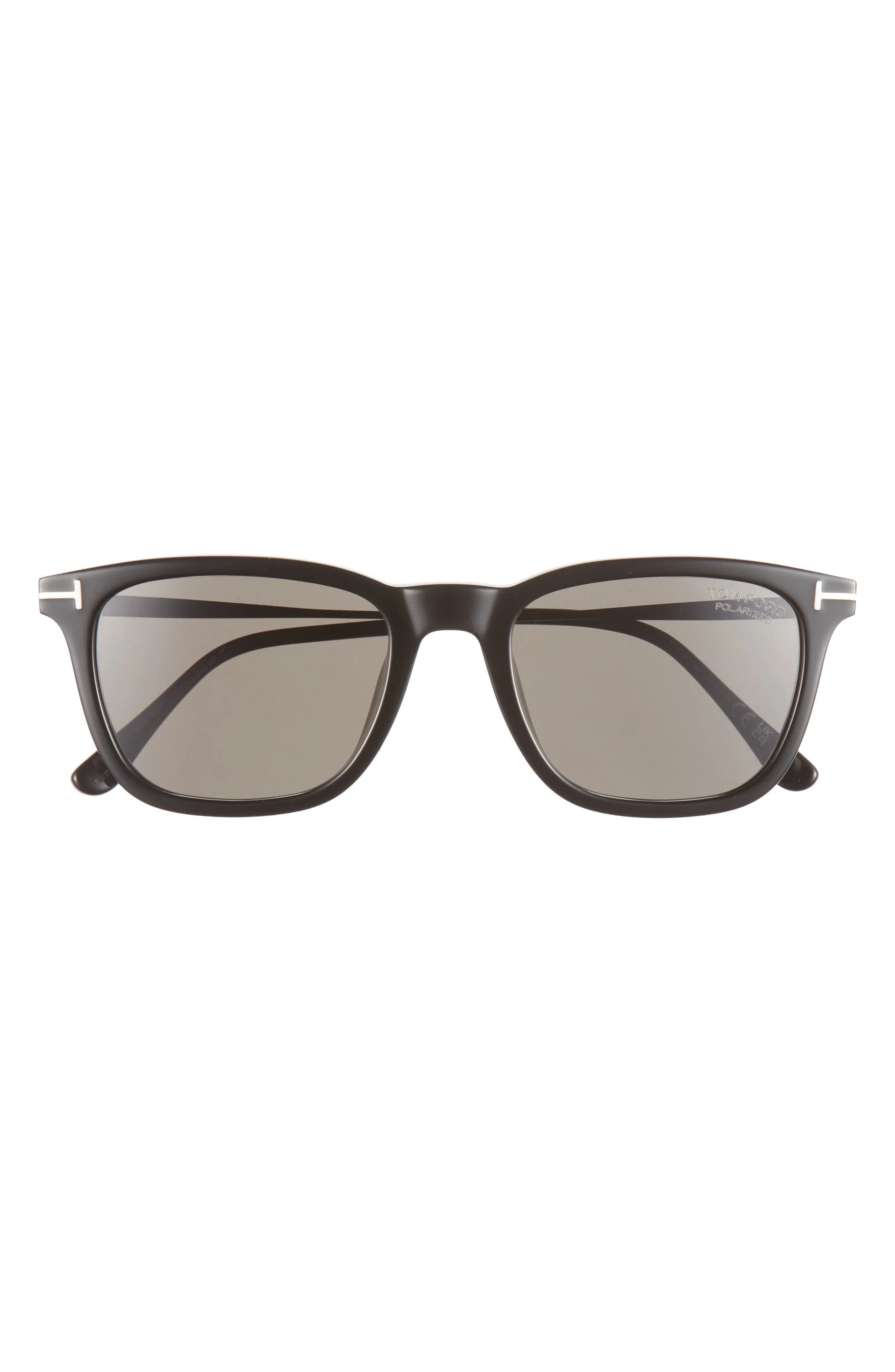 TOM FORD Arnaud 53mm Polarized Square Sunglasses in Shiny Black /Smoke Polarized at Nordstrom