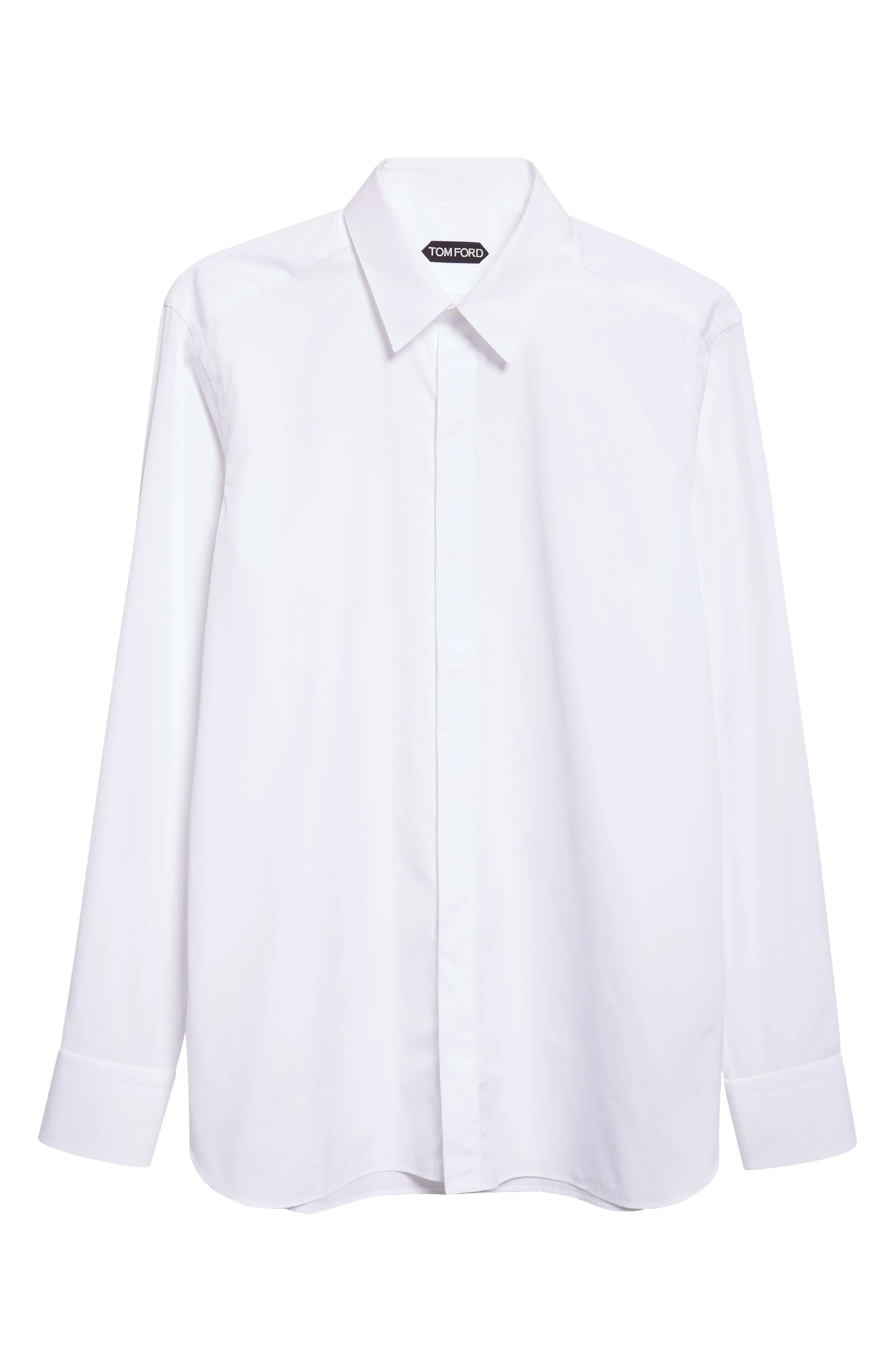TOM FORD Classic Fit Cotton Poplin Button-Up Shirt in Waa Optical White at Nordstrom