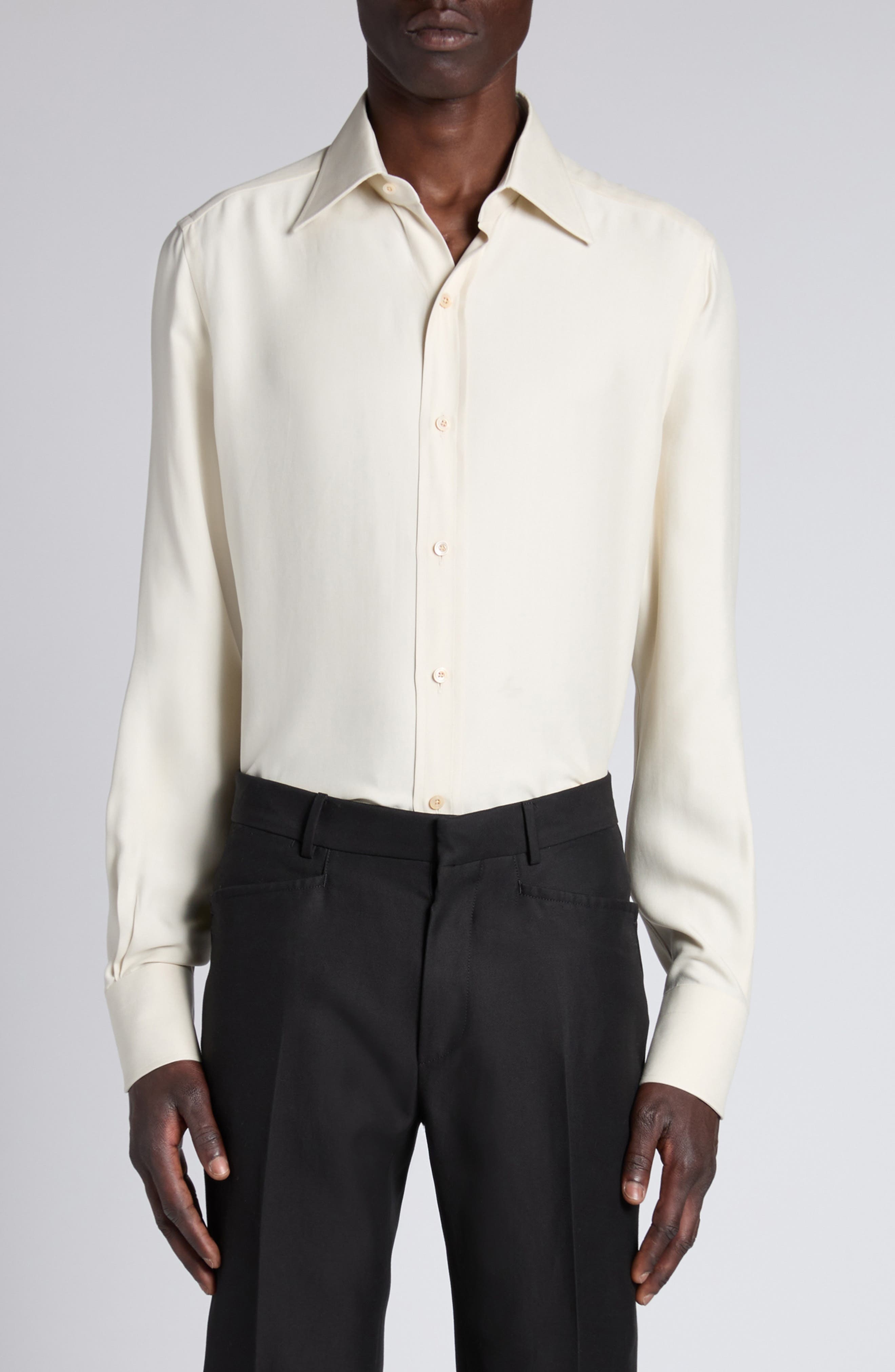 TOM FORD Classic Fit Silk & Curpo Twill Button-Up Shirt in Canvas White at Nordstrom