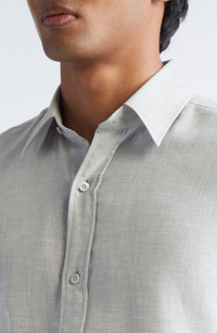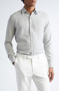 TOM FORD Cotton & Cashmere Mélange Twill Button-Up Shirt in Ig100 Grey at Nordstrom