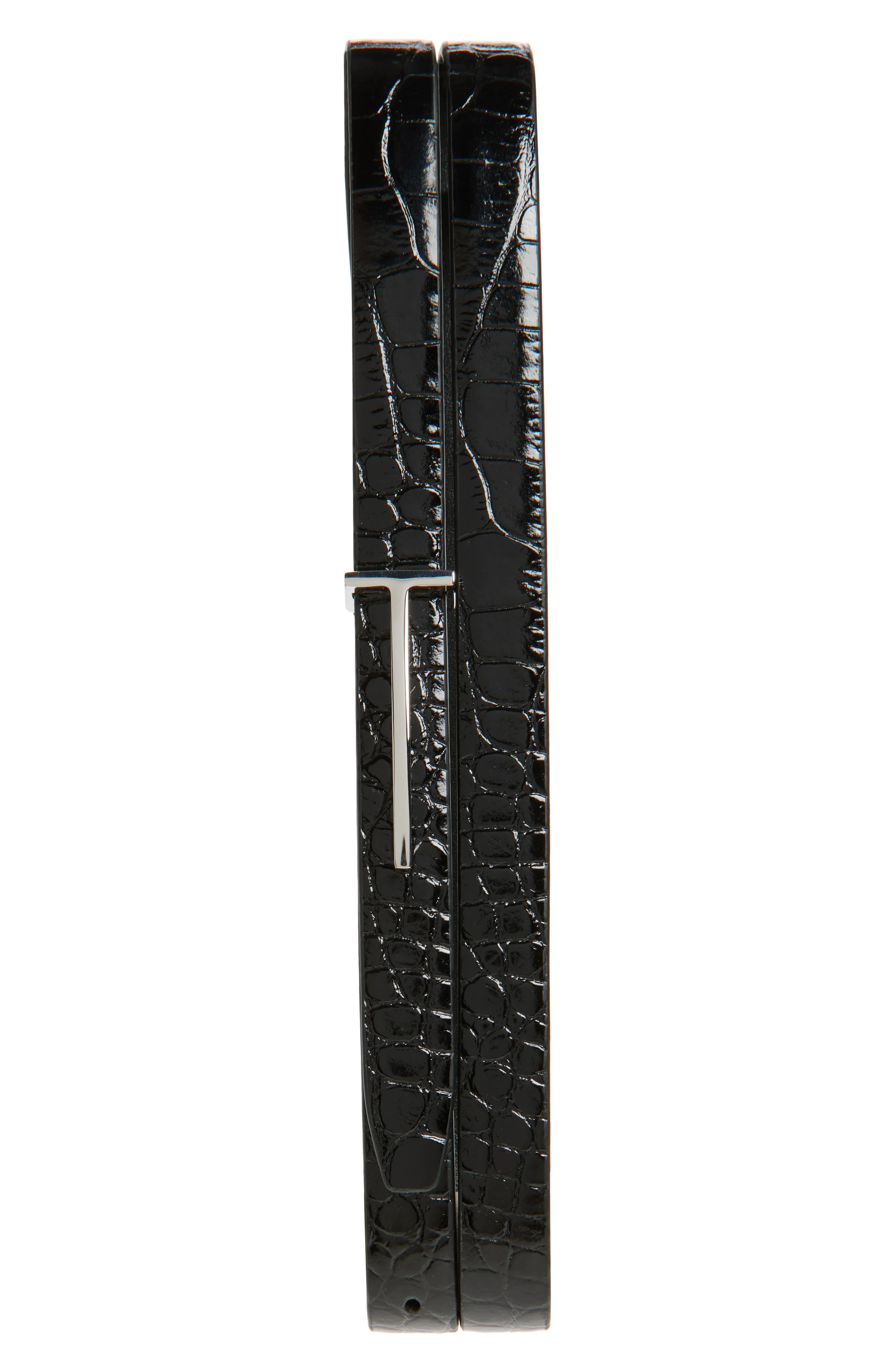TOM FORD Croc Embossed Patent Leather Skinny Belt in 1N001 Black at Nordstrom