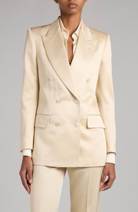 Wide peaked lapels frame this luminous double-breasted blazer that's tailored from silk-and-wool twill and detailed with meticulous pickstitching. Double-breasted button closure Peaked lapels Five-button cuffs Chest welt pocket; front flap pockets Cupro-silk lining 51% silk, 49% wool Dry clean Made in Italy Designer Clothing