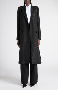 Cut to steal the night, these pleated tuxedo pants use silk-enriched wool-blend fabric to create a deep quiet sheen and a drape that never breaks. Knife-pleated fronts open into an elongated leg with a precise crease that holds from first toast to last car ride. Inside, a lining of cupro and silk gives a cool glide against the skin. Zip fly with hook-and-bar closure Front slant pockets; back button-welt pockets Cupro-and-silk lining 52% virgin wool, 32% mohair, 16% silk Dry clean Made in Italy Designer Clothing
