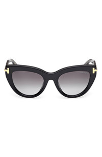 TOM FORD Icon 52mm Cat Eye Sunglasses in Shiny Black Beveled /Smoke at Nordstrom