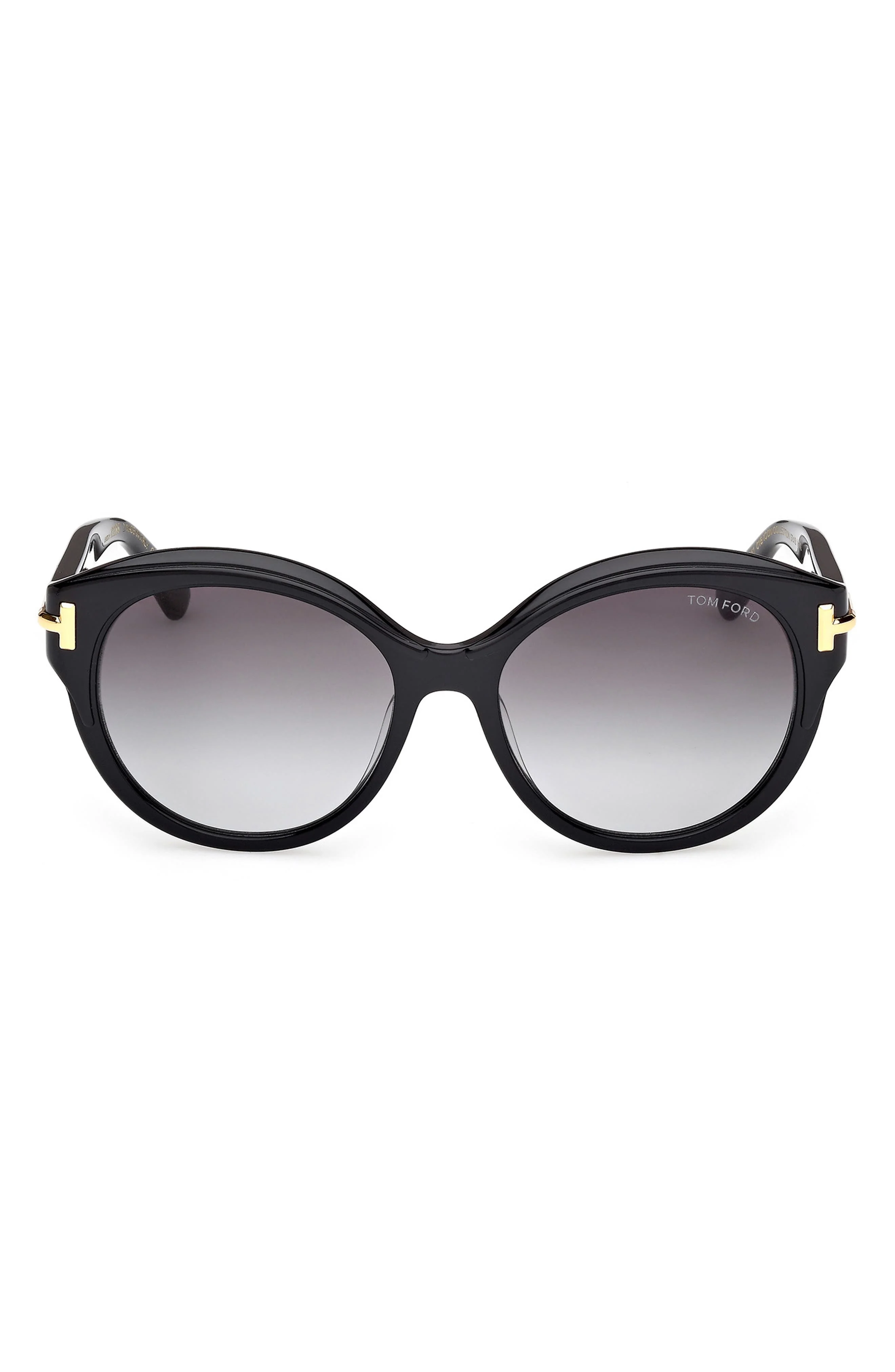 TOM FORD Icon 57mm Gradient Round Sunglasses in Shiny Black Beveled /Smoke at Nordstrom