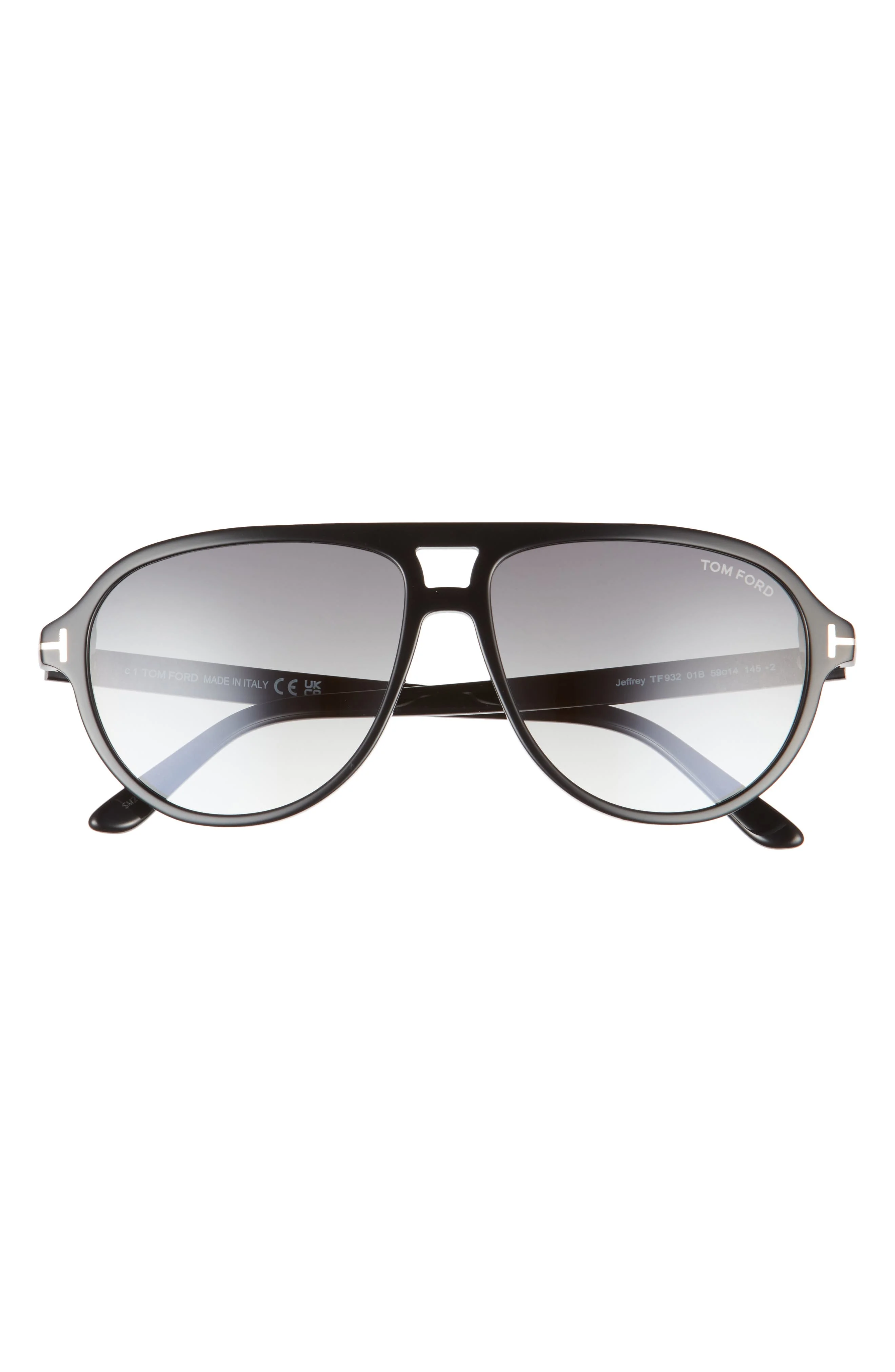 TOM FORD Jeffrey 59mm Gradient Pilot Sunglasses in Shiny Black /Gradient Smoke at Nordstrom