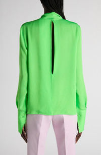 TOM FORD Keyhole Cutout Washed Silk Georgette Top in Green Flash at Nordstrom