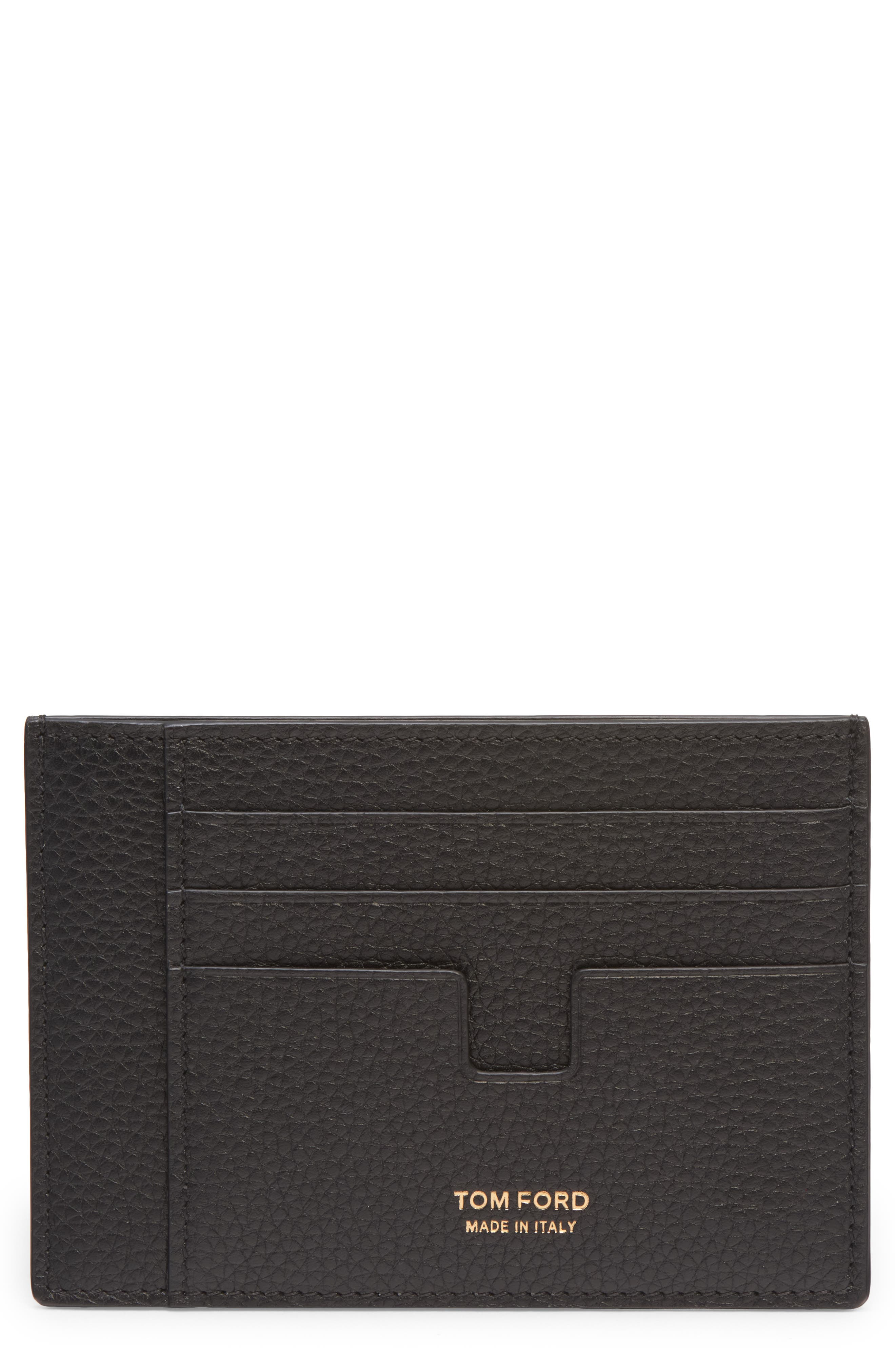 TOM FORD Large T-Line Soft Grain Leather Card Holder in 1N001 Black at Nordstrom