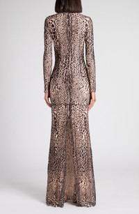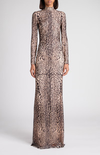TOM FORD Leopard Print Long Sleeve Lace Gown in Xkbdp Brown/Antique Pink at Nordstrom