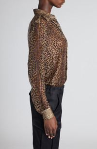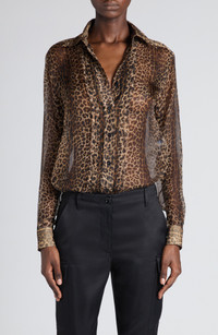 TOM FORD Leopard Print Silk Chiffon & Crepe Shirt in Leopard Brown/Black at Nordstrom