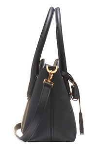 Rolled top handles that are long enough to sling over your shoulder add elegant ease to this tote made in Italy from soft and smooth calfskin leather in an east/west silhouette. Top zip closure Top carry handles; removable, adjustable crossbody strap Interior wall pocket Structured silhouette with flat base and protective metal feet Leather Made in Italy Designer Handbags