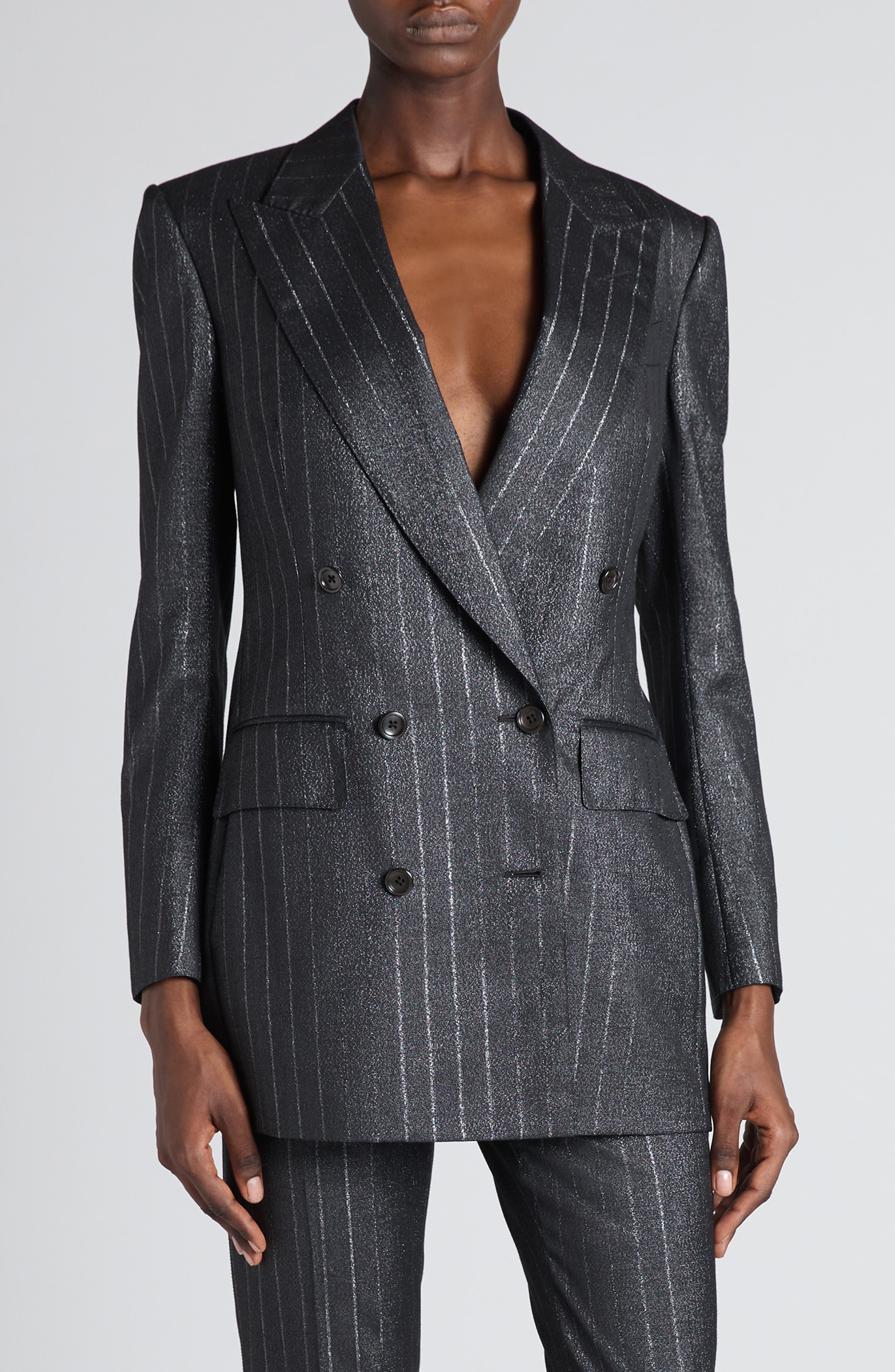 TOM FORD Metallic Stripe Wool Blend Blazer in Dark Silver at Nordstrom