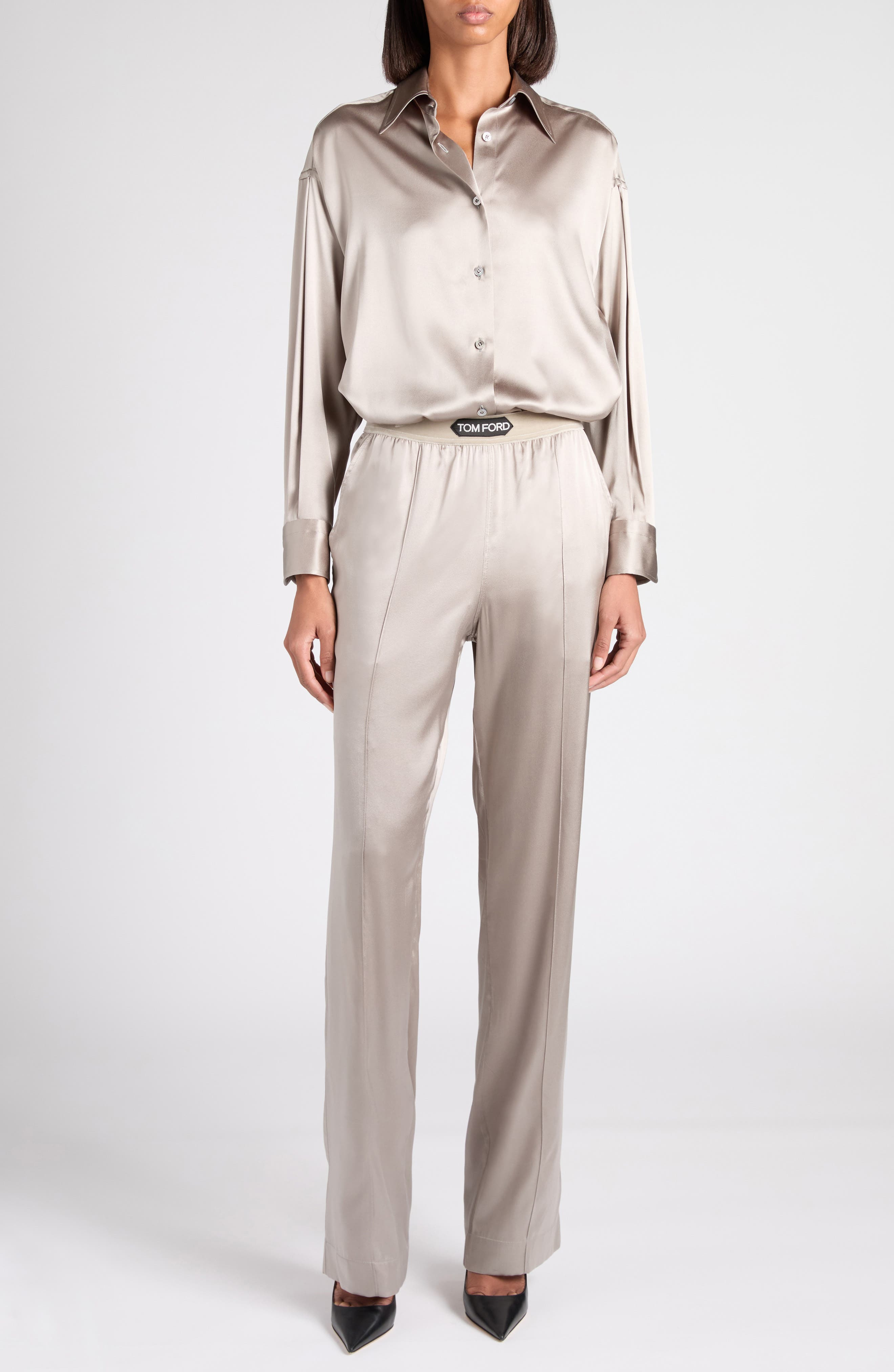 TOM FORD Relaxed Fit Stretch Silk Satin Blouse in Ig606 Dark Silver at Nordstrom