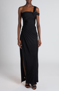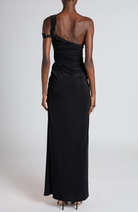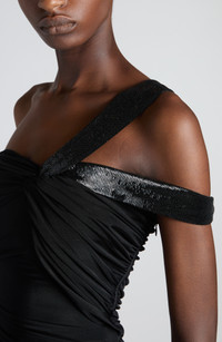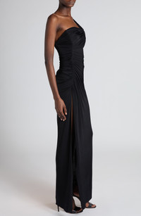 Haider Ackermann stays true to the label's sultry aesthetic with this ruched gown featuring a strappy asymmetric neckline illuminated with sequin shimmer. Hidden side-zip closure Asymmetric neck Side slit 97% viscose, 3% elastane Dry clean Made in Italy Designer Clothing