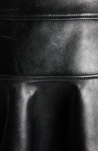 Glossy panels traced with tonal topstitching nod to the edgy moto inspiration of this ruffle-hem miniskirt impeccably crafted of supple plonge lambskin. Side zip closure Lined Leather Professional leather clean Made in Italy Designer Clothing