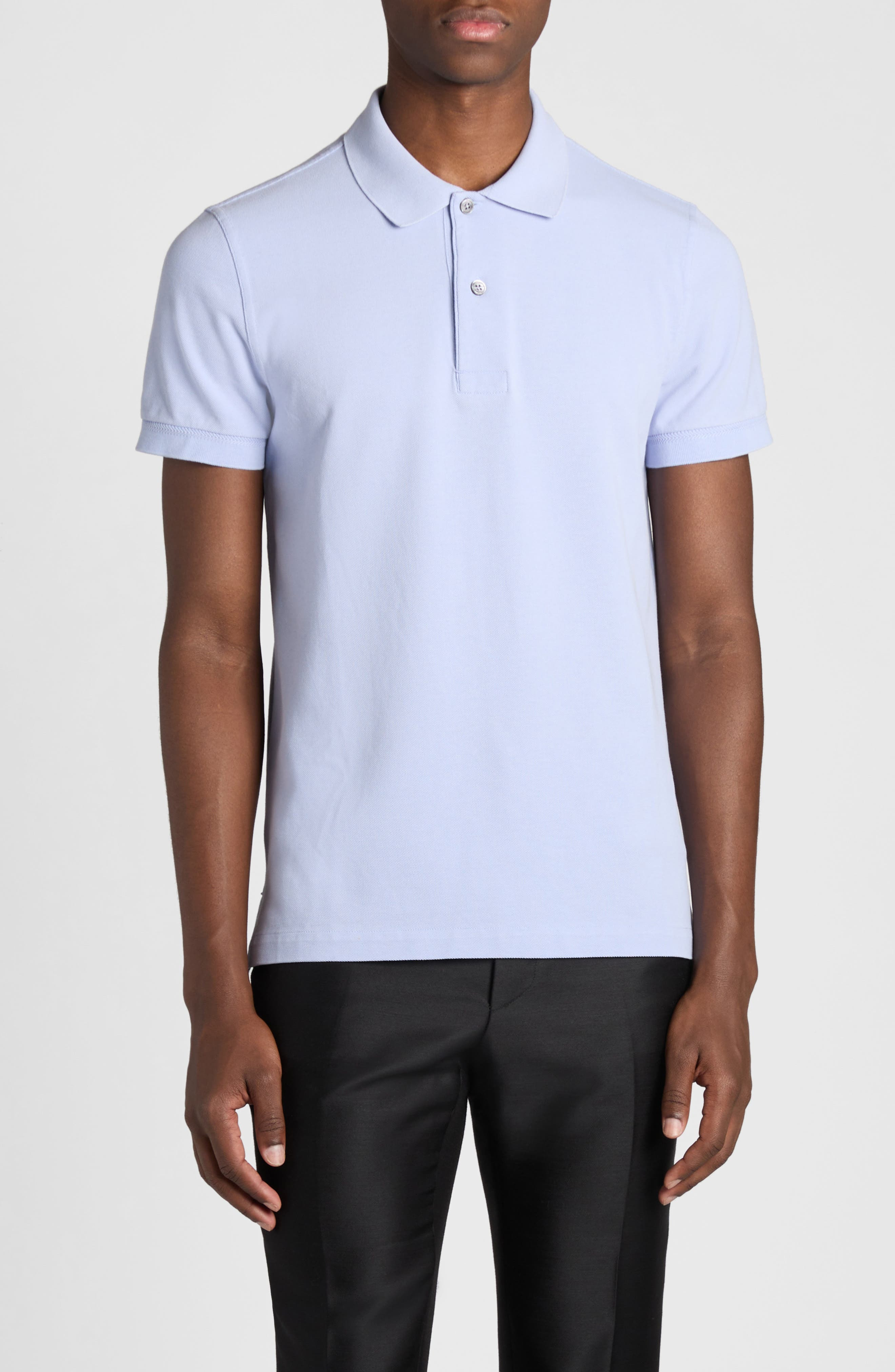 TOM FORD Short Sleeve Cotton Piqué Polo in Periwinkle at Nordstrom