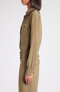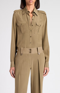 TOM FORD Silk crêpe de Chine Military Shirt in Fg501 Khaki at Nordstrom