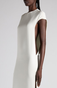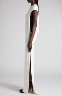 Featured on the runway for Haider Ackermann's debut show, this stretch-silk gown is quietly seductive with its elegant silhouette that takes a sensual turn with dramatically low-cut armholes and thigh-high side slits. Hidden back-zip closure Jewel neck Cap sleeves Side slits 94% silk, 6% elastane Dry clean Made in Italy Designer Clothing
