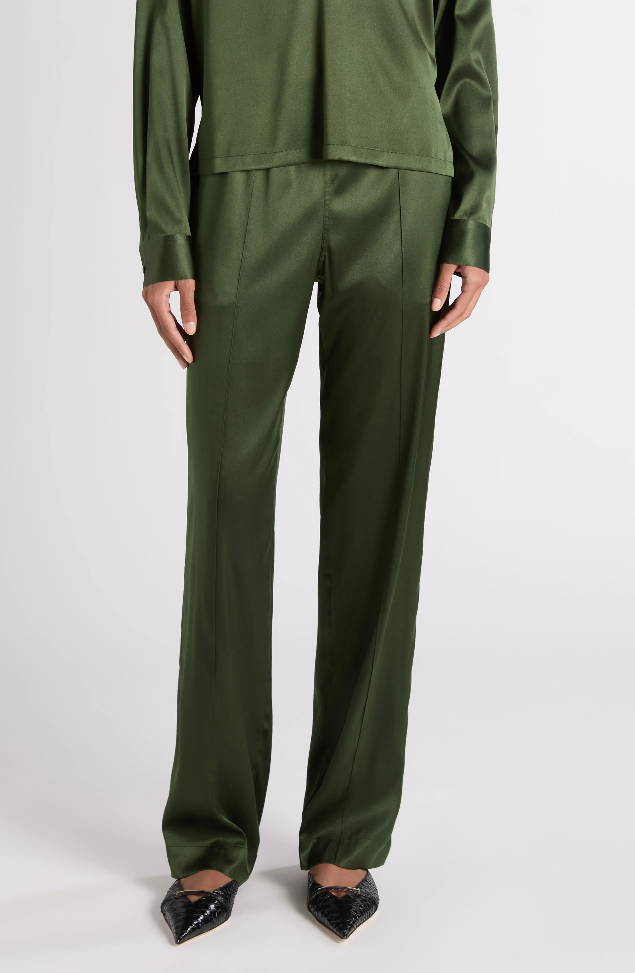 TOM FORD Stretch Silk Satin PJ Pants in Moss Green at Nordstrom