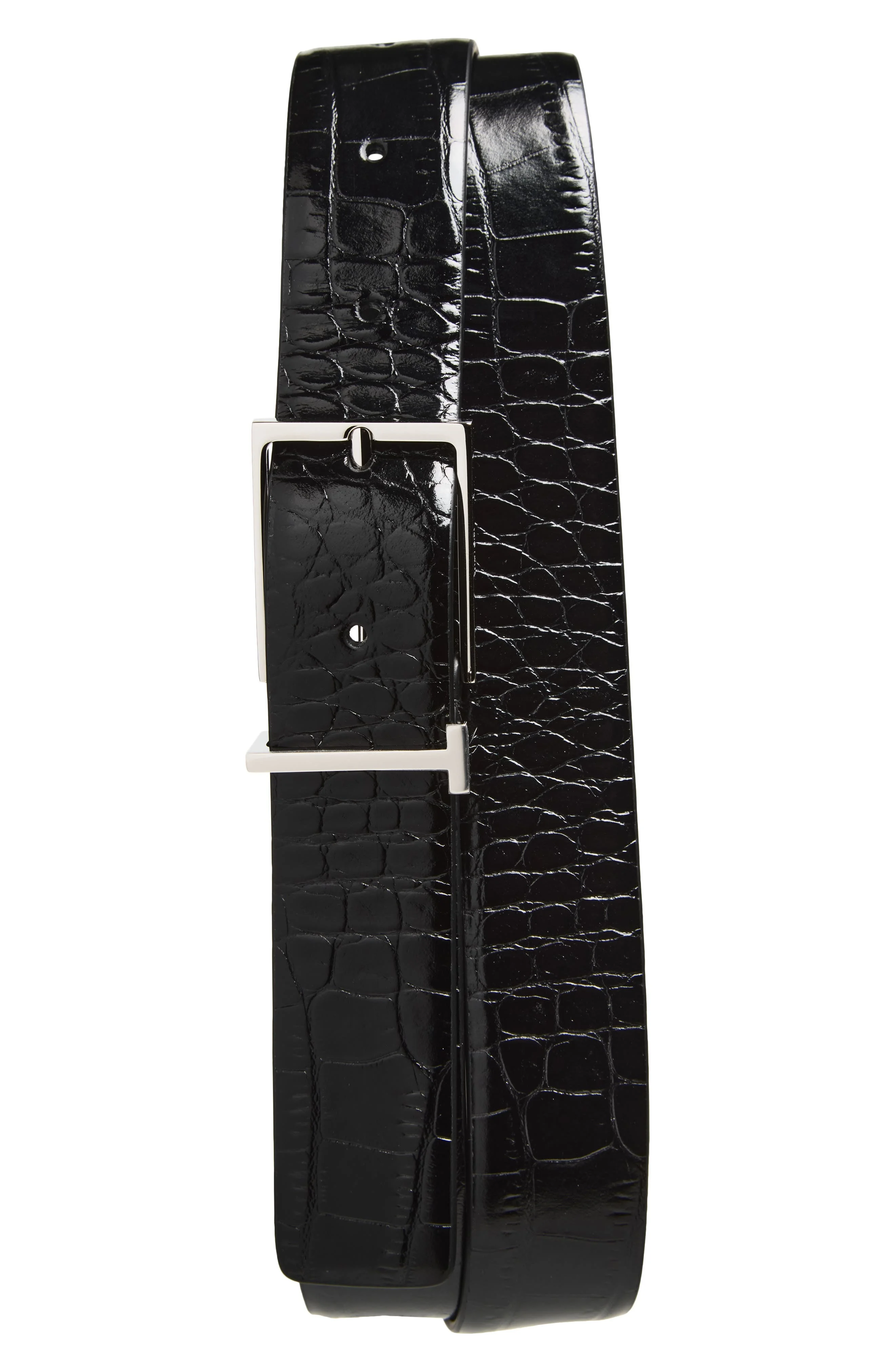 TOM FORD T Loop Croc Embossed Patent Leather Belt in Black at Nordstrom