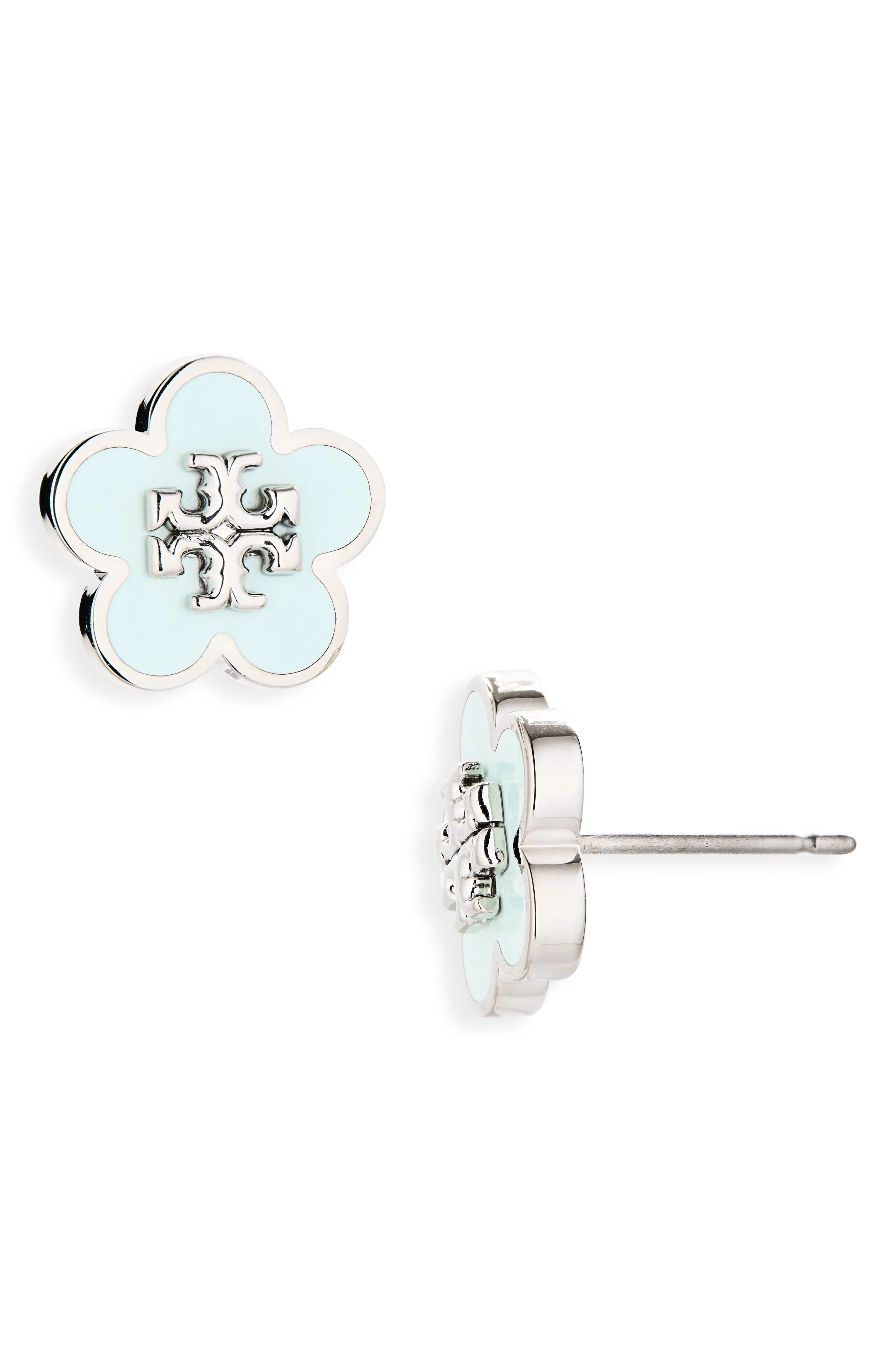 Tory Burch Forget Me Not Enamel Stud Earrings in Tory Silver /Light Green at Nordstrom