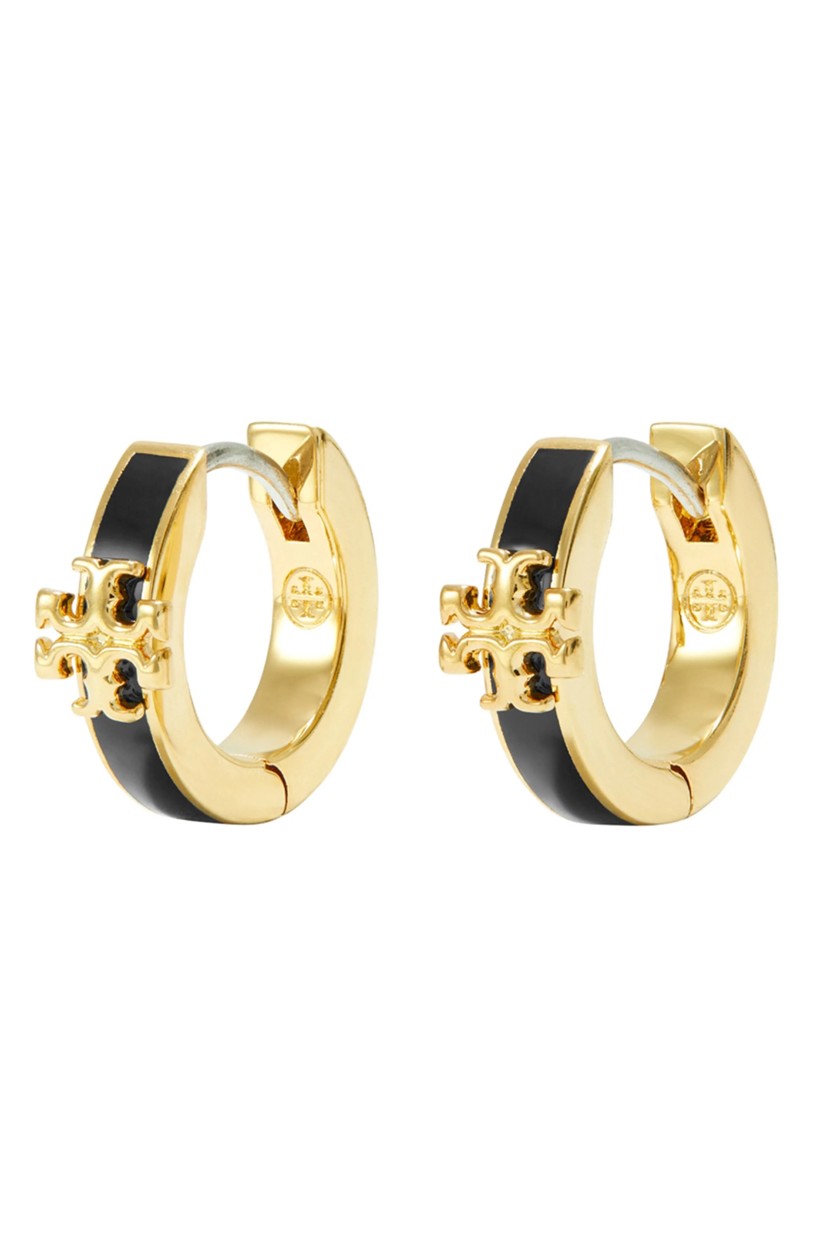 Tory Burch Icon Enamel Huggie Earrings in Tory Gold /Black at Nordstrom