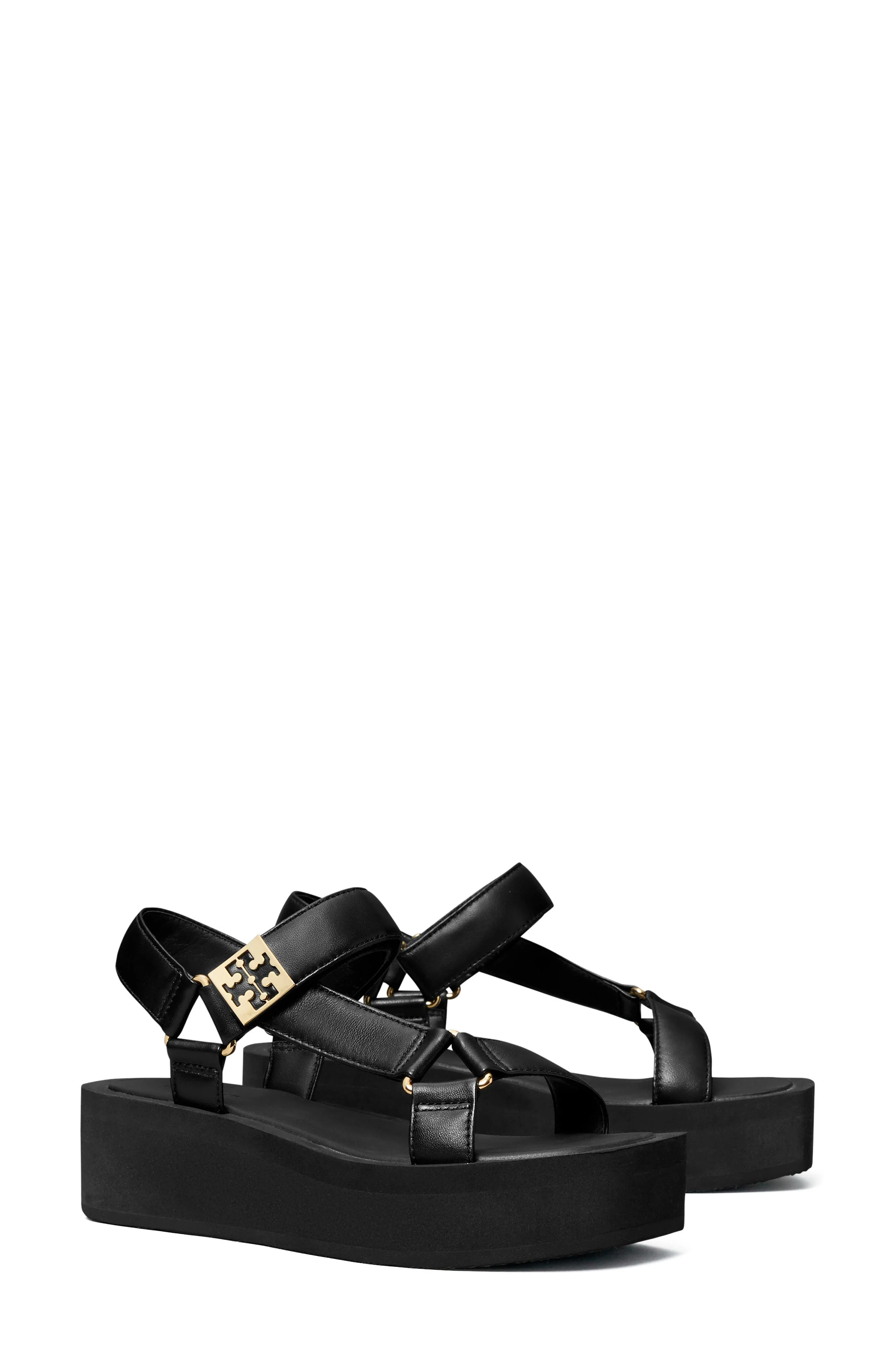 Tory Burch Mellow Platform Sandal in Perfect Black /Gold /Perfect Black at Nordstrom