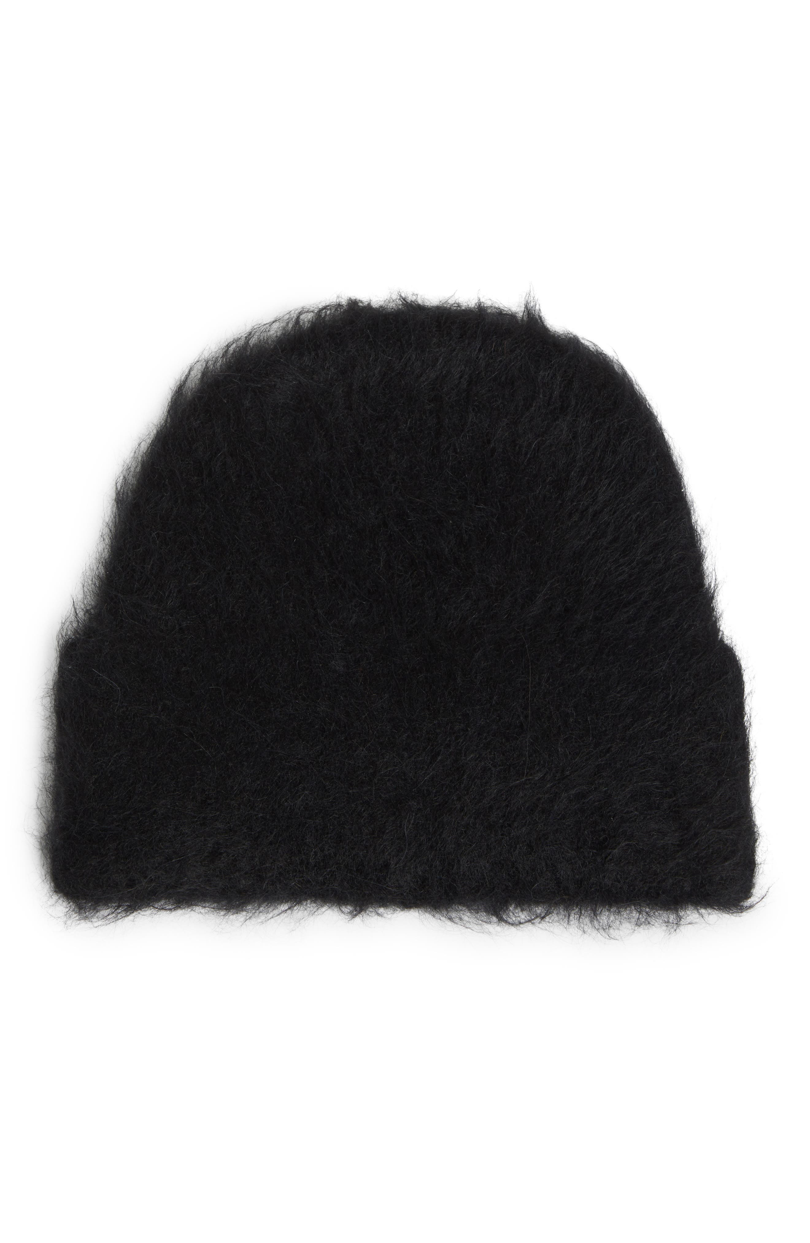Fuzzy alpaca-blend yarns bring cozy texture to this knit beanie that adds sophisticated panache to your cold-weather look. 78% alpaca, 19% recycled polyamide, 3% elastane Hand wash, dry flat Imported