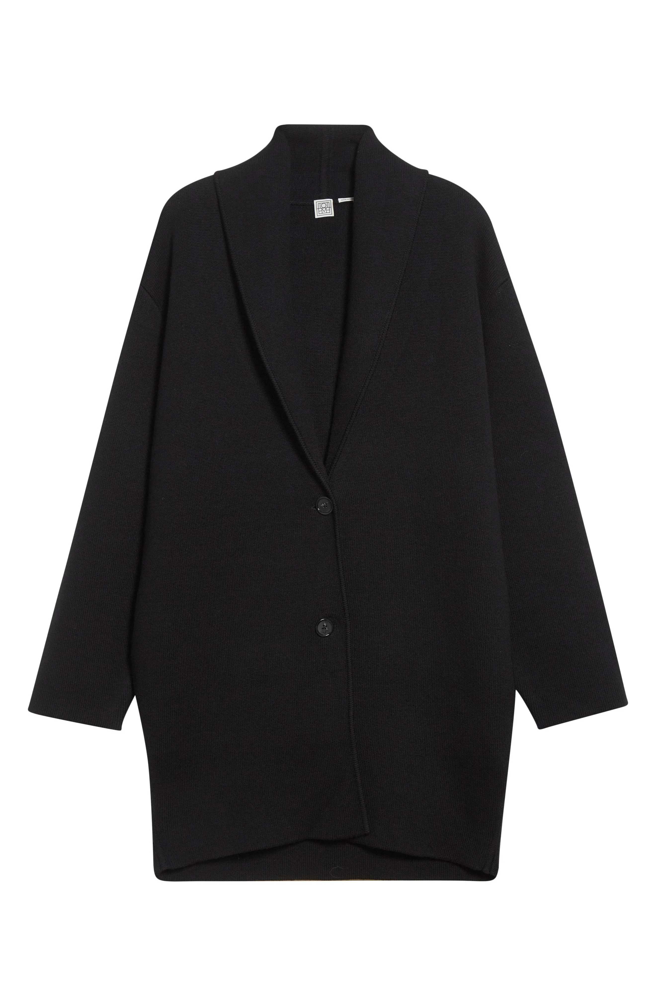 TOTEME elevates Scandinavian simplicity into another quietly luxe staple with this longline wool cardigan relaxed with dropped shoulders that flow into softly curved sleeves. Front button closure Shawl collar Long sleeves Dropped shoulders Side-seam pockets Removable tie belt 100% wool Dry clean Imported Designer Clothing