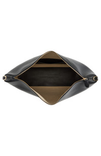 A superslouchy silhouette brings relaxed ease to an Italian-crafted shoulder bag shaped from glossy naplak leather. Top zip closure Shoulder strap Interior card slot Structured silhouette with flat base and protective metal feet Lined Leather Made in Italy Designer Handbags