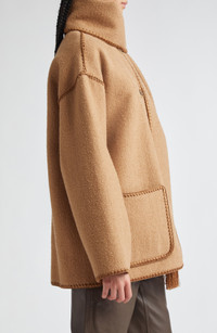 TOTEME Chain Stitch Wool Blend Scarf Jacket in Camel at Nordstrom