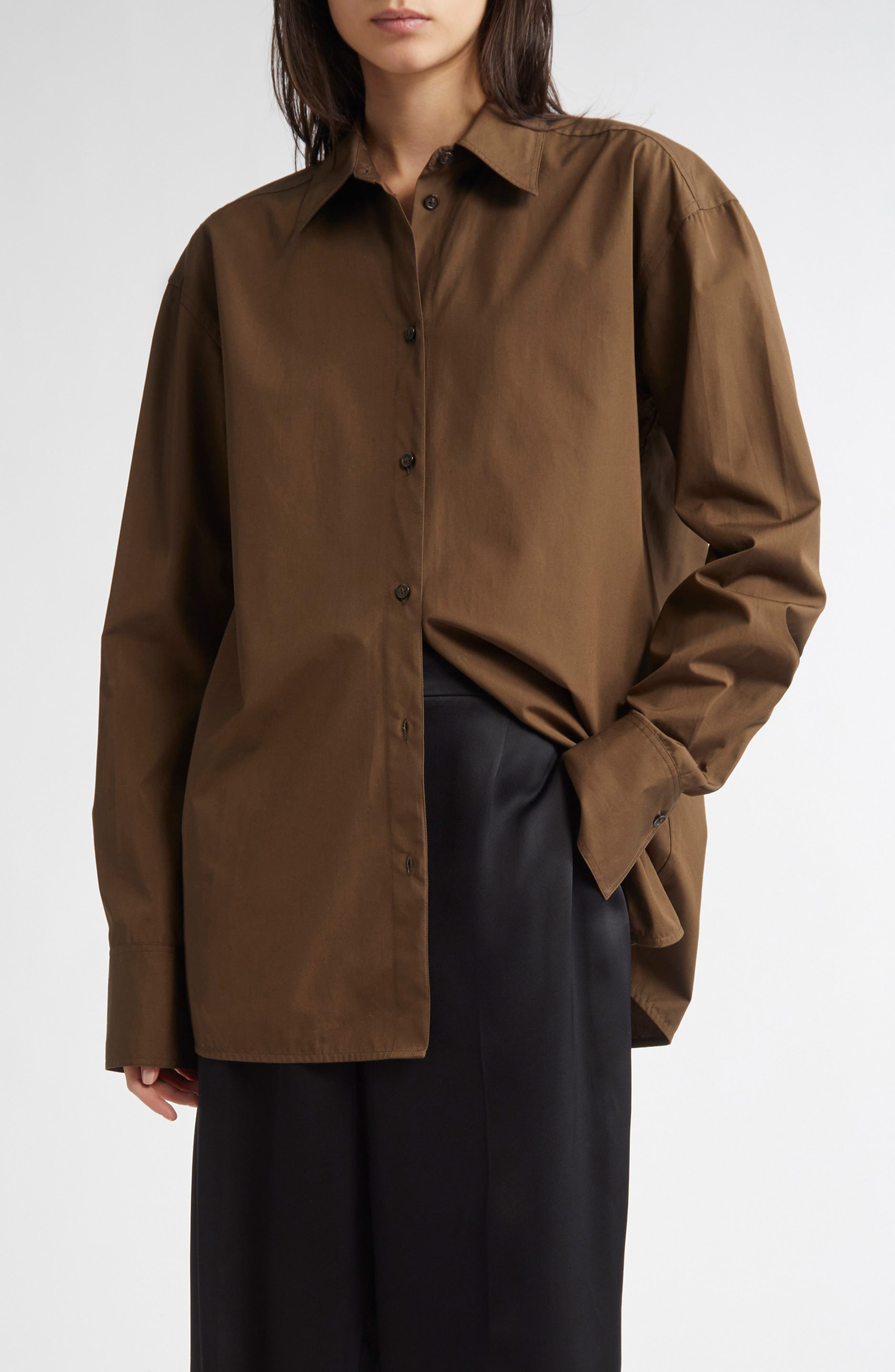 TOTEME Classic Cotton Button-Up Shirt in Pepper at Nordstrom