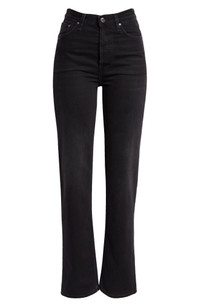 TOTEME Classic High Waist Rigid Straight Leg Jeans in Faded Black at Nordstrom