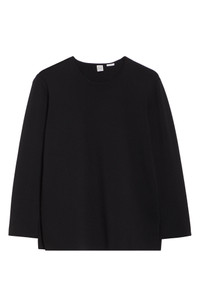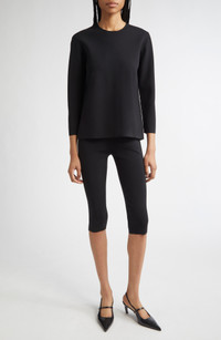 Dropped shoulders accentuate the relaxed aesthetic of this versatile top cut from a compact knit with a hint of shape-retaining stretch. Jewel neck Three-quarter sleeves 53% viscose, 45% recycled polyamide, 2% elastane Dry clean Imported Designer Clothing