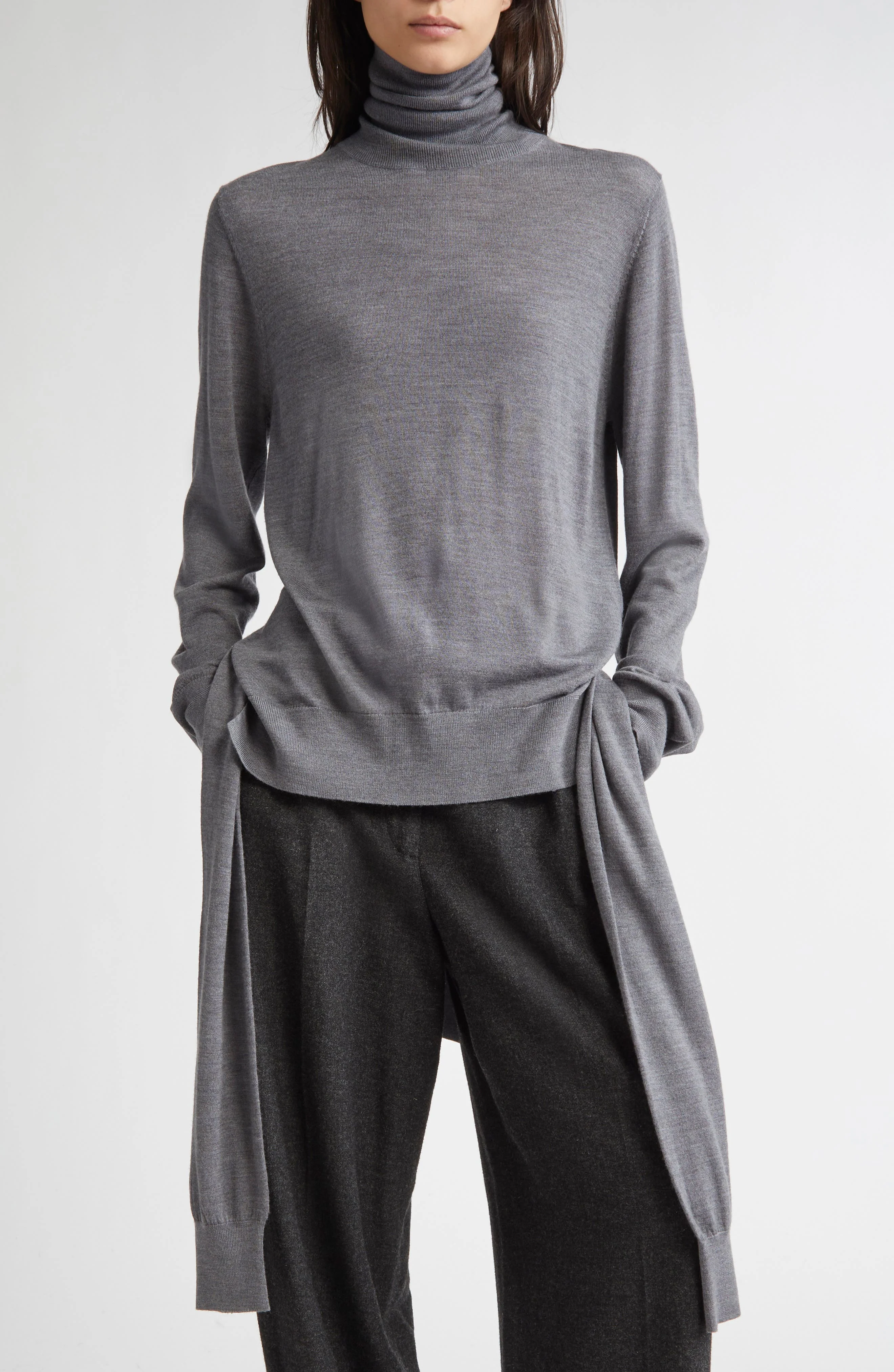 TOTEME Double Sleeve Wool & Silk Turtleneck Sweater in Mid Grey Melange at Nordstrom