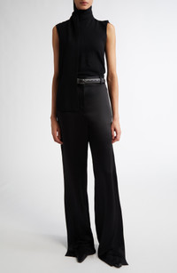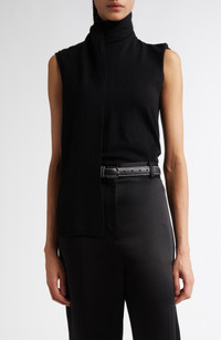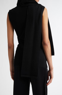 Knit from a midweight merino-wool blend, this sleeveless top features a sophisticated slim shape and an attached scarf, embodying a recurring theme of the brand. Funnel neck with attached scarf Sleeveless 92% merino wool, 8% polyamide Hand wash, dry flat Imported Designer Clothing