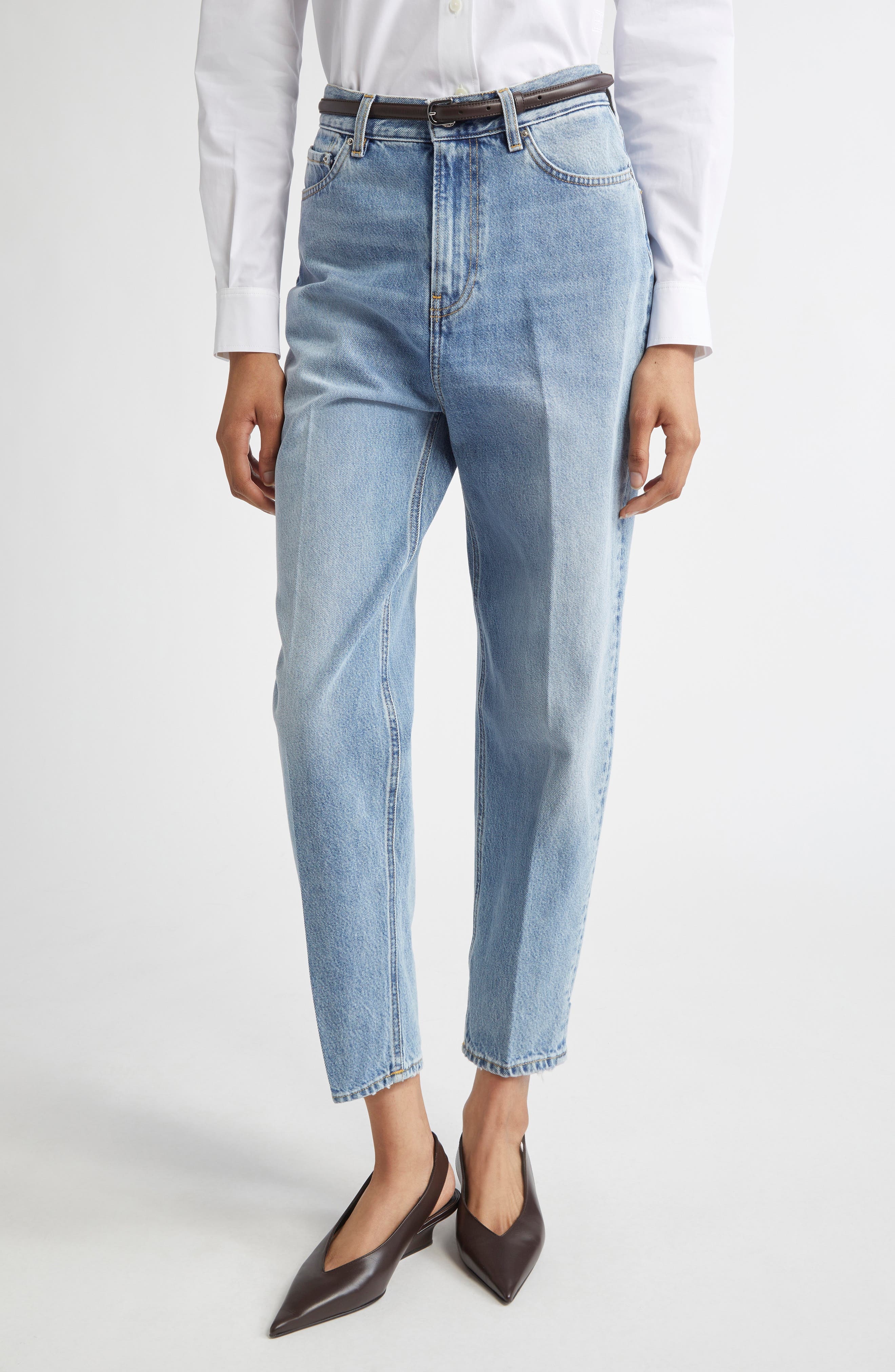 TOTEME High Waist Tapered Jeans in Worn Blue at Nordstrom