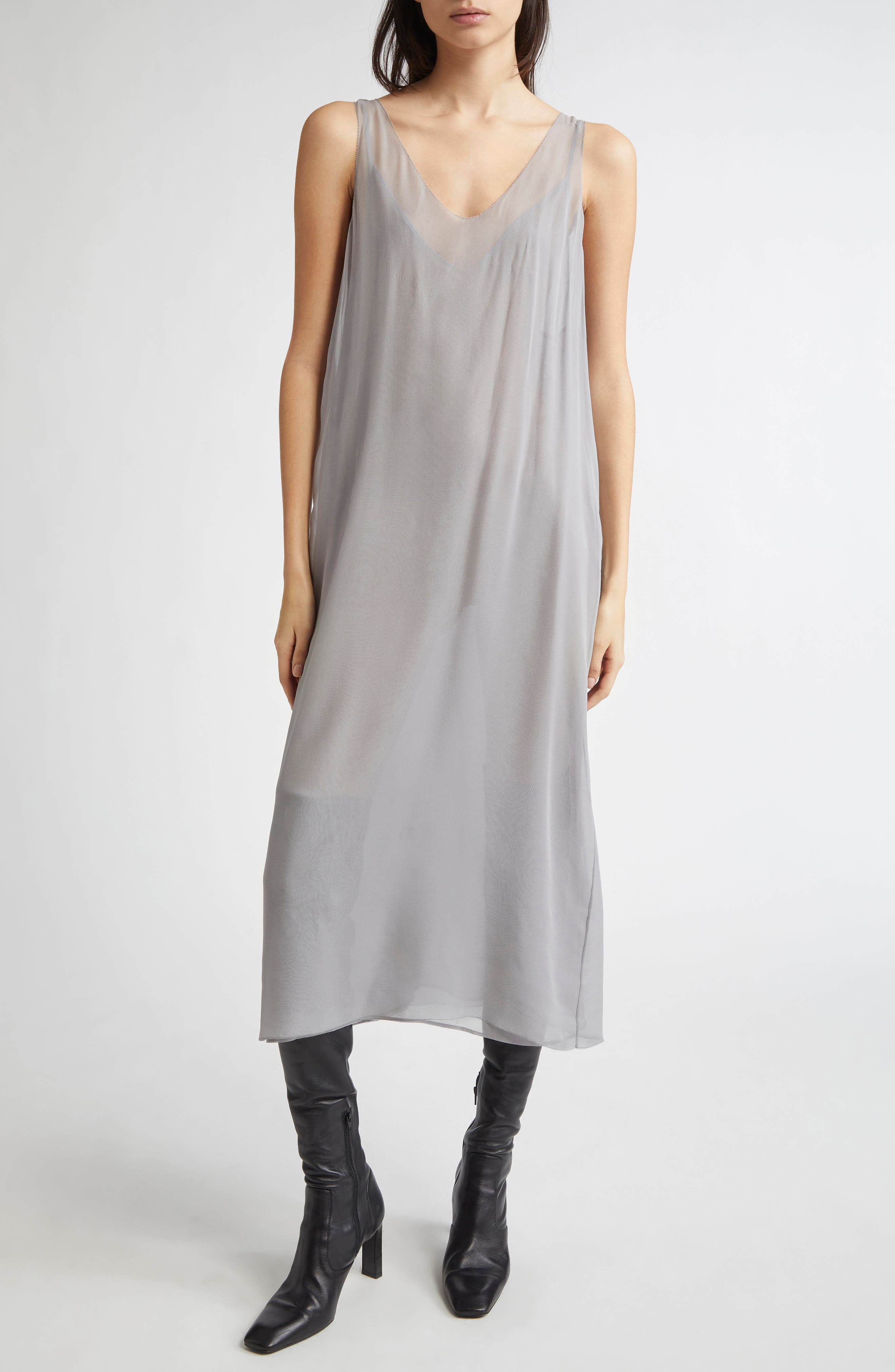 TOTEME Silk Chiffon Slipdress in Light Grey at Nordstrom